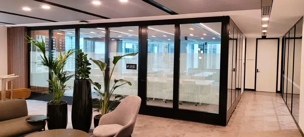 Operable walls are acoustic office partitions that are perfect when a wider entertainment or event space is needed. Dividing panels can be opened-up to connect various spaces into a larger more collaborative environment whilst providing acoustic separation and privacy from adjacent spaces.