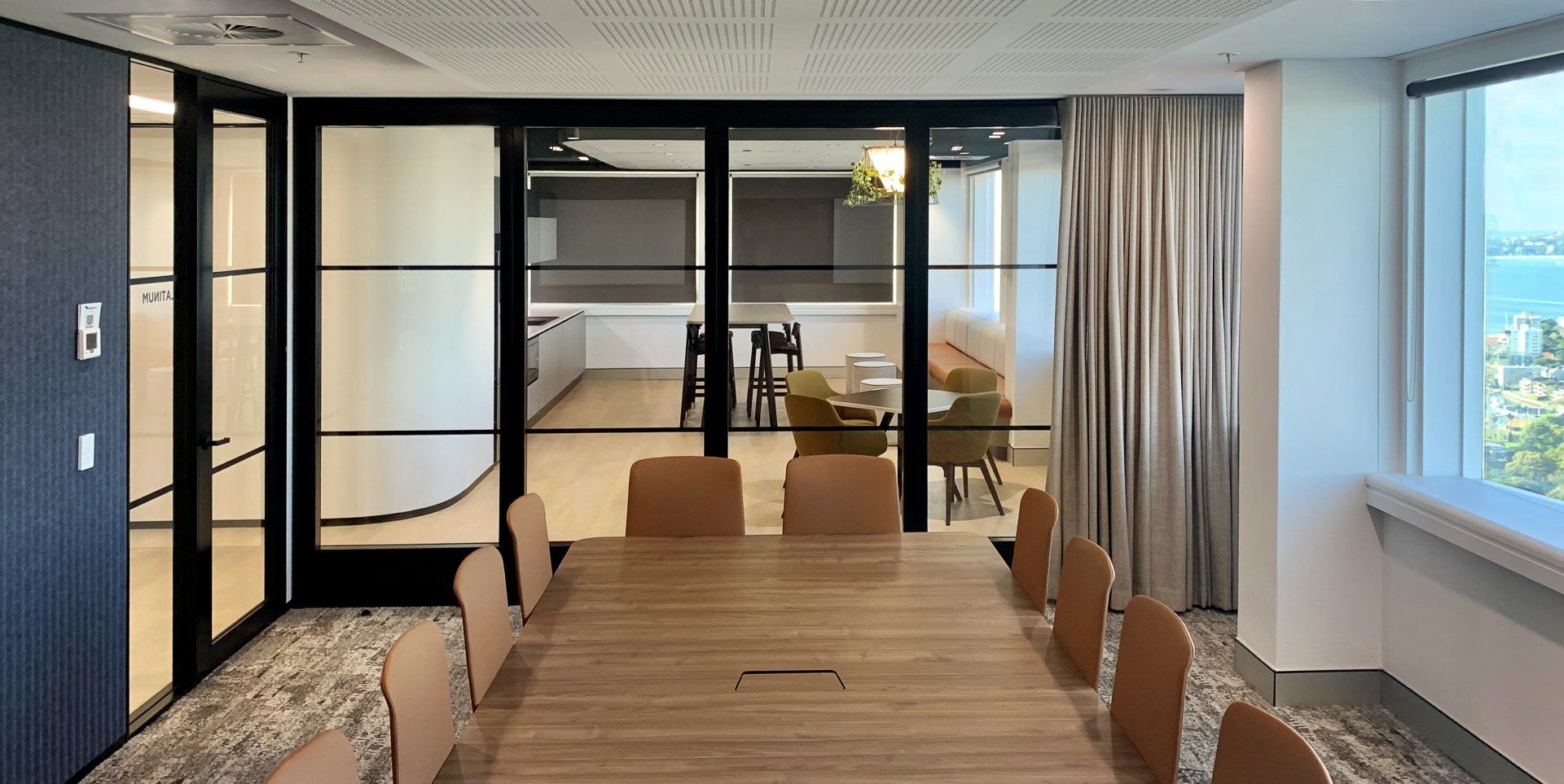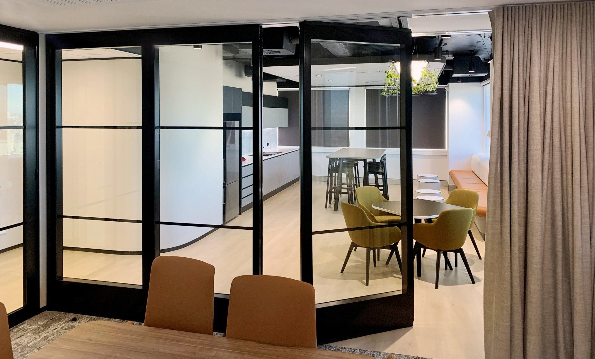 with the reliability of a Bildspec Operable Wall. It allows for a see-through connection of spaces with acoustic reduction properties.